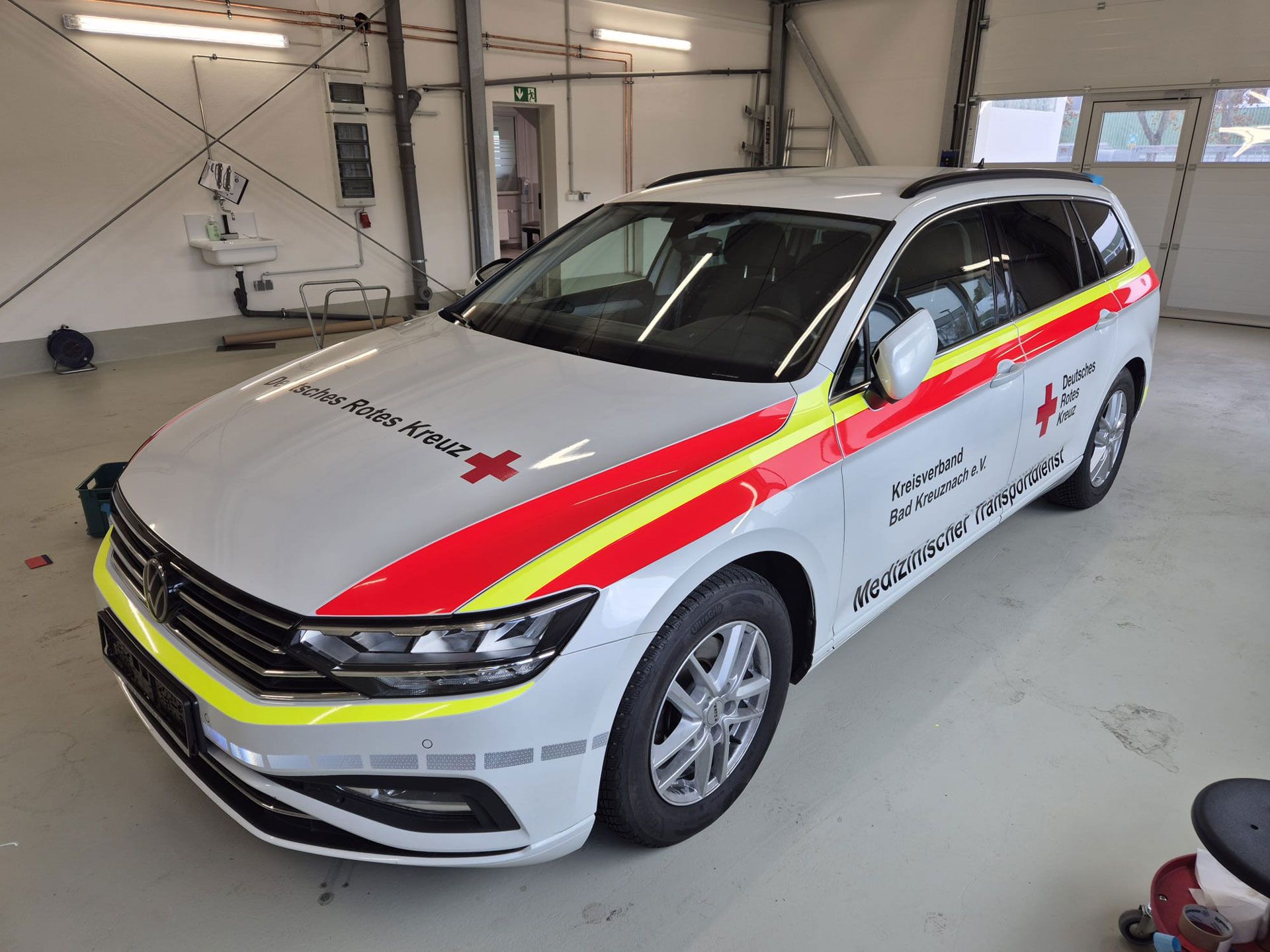 Jedes Projekt wird anhand maßgenauer Vorlagen umgesetzt, sodass Fahrzeug und Beschriftung ein harmonisches Gesamtbild ergeben.